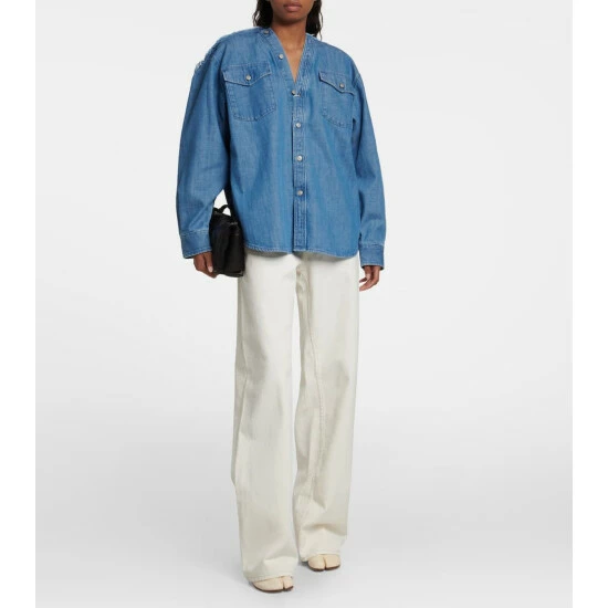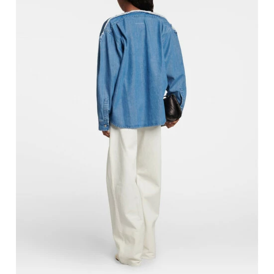 A subversive take on denim, this collarless shirt from MM6 Maison Margiela is true to the brand’s deconstructed aesthetic. Shaped for a relaxed fit with signature white stitching at the back, it’s designed as if the front and back are sewn together behind the shoulders.