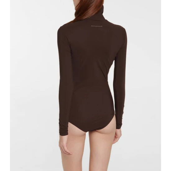 MM6 Maison Margiela caters to your everyday wear with this jersey-blend bodysuit. The high-neck style has a subtle hotstamped logo at the chest.