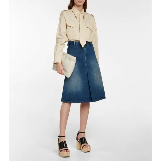 This box-pleated A-line skirt from MM6 Maison Margiela will slot seamlessly into your everyday wardrobe. It fastens with a logo-embossed button at the high-rise waist and arrives in a faded mid-blue wash.