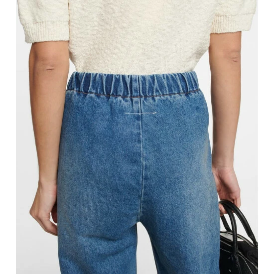 These MM6 Maison Margiela are faded and distressed to perfection in true brand form. Designed with a high rise and wide legs, this pair has an elasticated waistband for added comfort.
