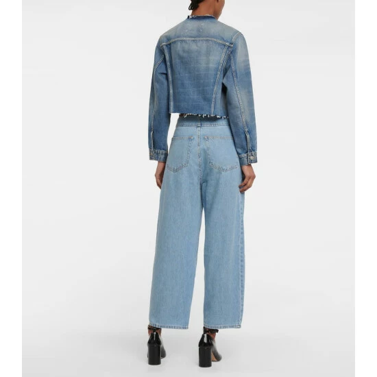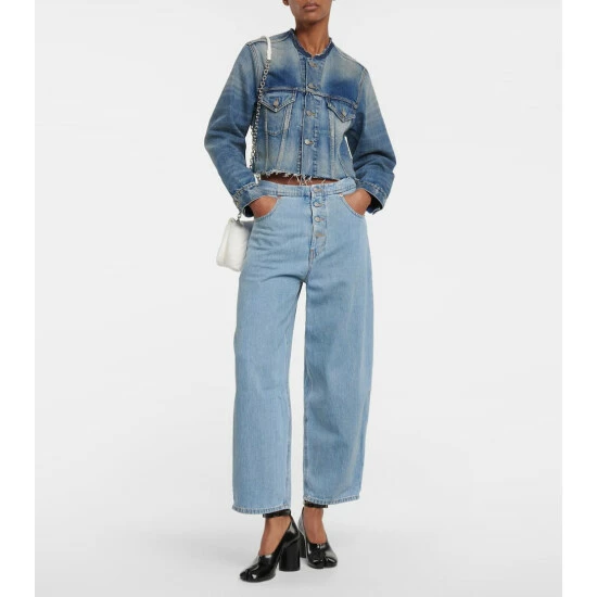 These jeans from MM6 Maison Margiela have barrel-shaped wide legs and cropped hems. Made from bleached denim, this high-rise pair is detailed with an exposed button fly.