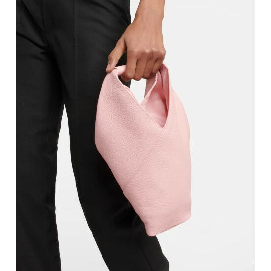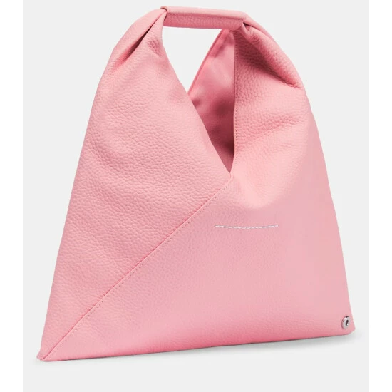 The triangular shape of MM6 Maison Margiela’s Japanese bags is inspired by the ancient art of origami. This tote style is made from leather with a top handle and buttoned edges.