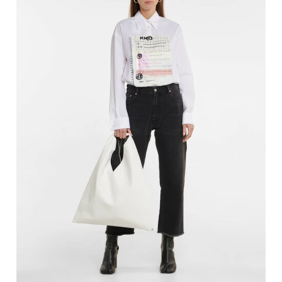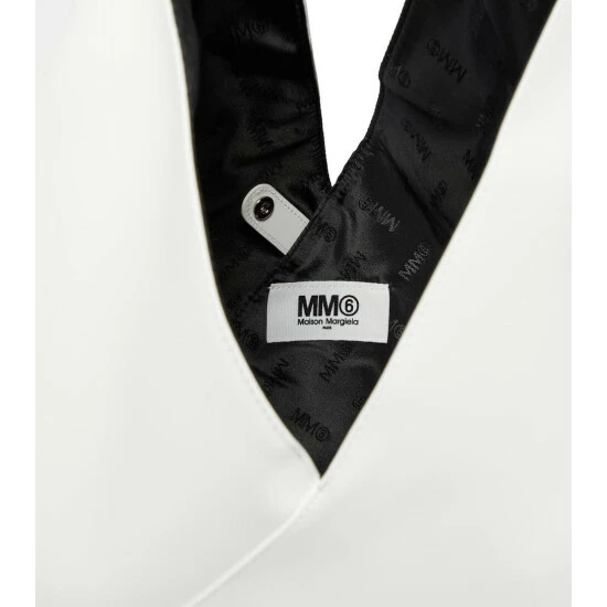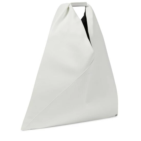 Mm6 Maison Margiela’s iconic Japanese Medium tote is rendered here in faux leather. Its triangular shape is inspired by origami and bends and folds for optimum storage. Note the label’s iconic stitching at the back.