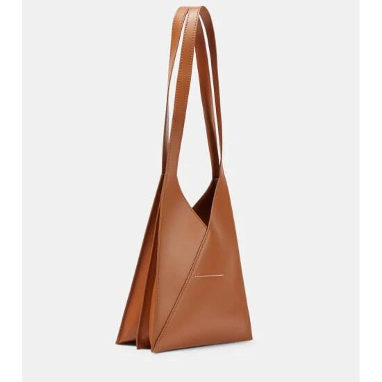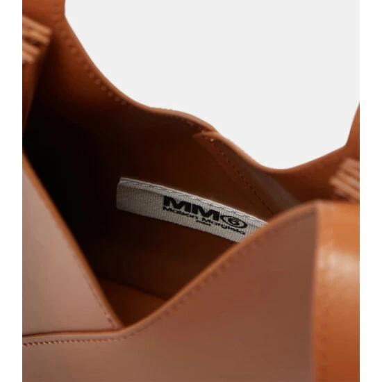 MM6 Maison Margiela’s iconic Japanese bag in brown leather is a timeless staple. Inspired by origami, it has a triangular shape and hangs from a single shoulder strap.