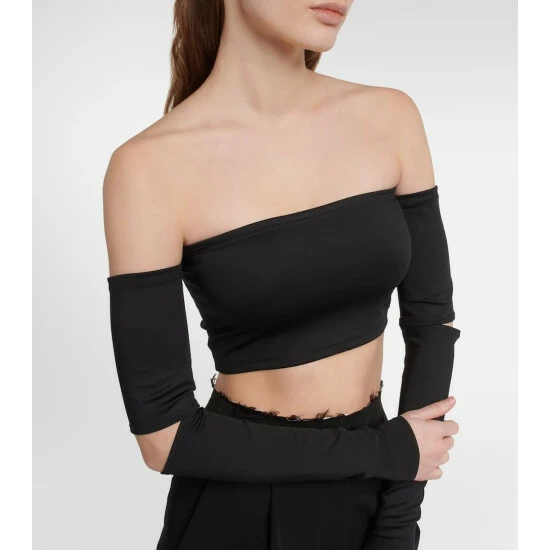 This strapless crop top from MM6 Maison Margiela is made from jersey. It has logo embroidery and comes with separate long sleeves with cutout detailing.