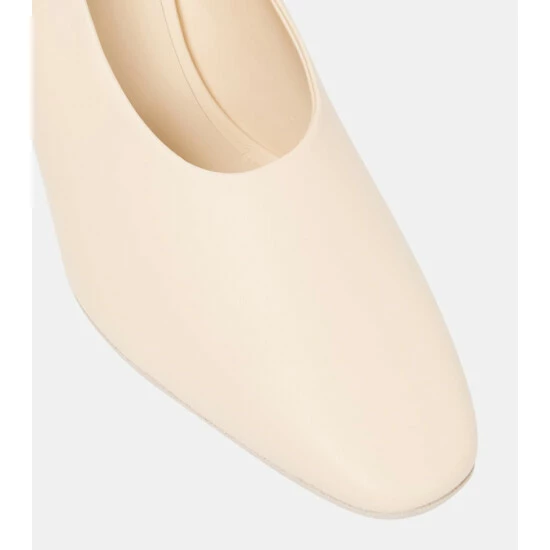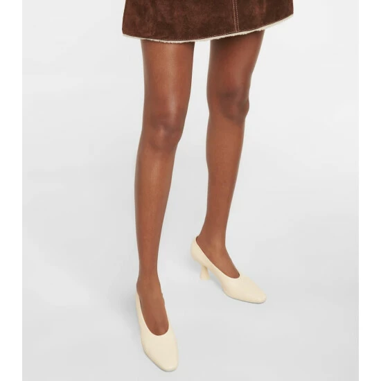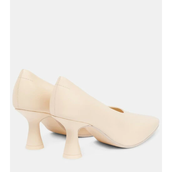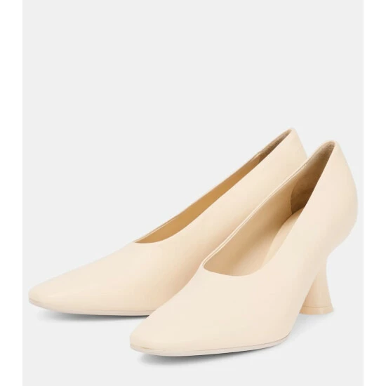 These leather pumps from MM6 Maison Margiela are simultaneously classic and contemporary. The off-white style features a high neckline and slightly sculpted heel for a modern touch.