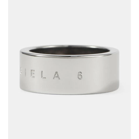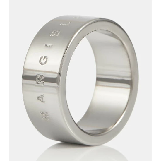 This ring from MM6 Maison Margiela features logo engraving. This wide wedding band design is made from silver-toned brass with a polished finish.