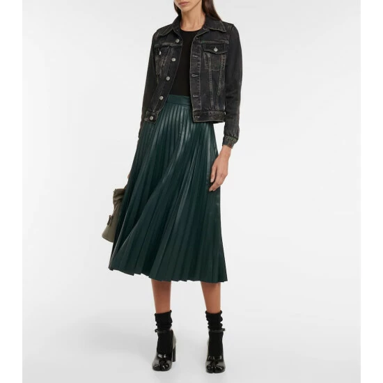 This midi skirt from MM6 Maison Margiela is made from supple faux leather. It has a straight silhouette and sharp accordion pleats.