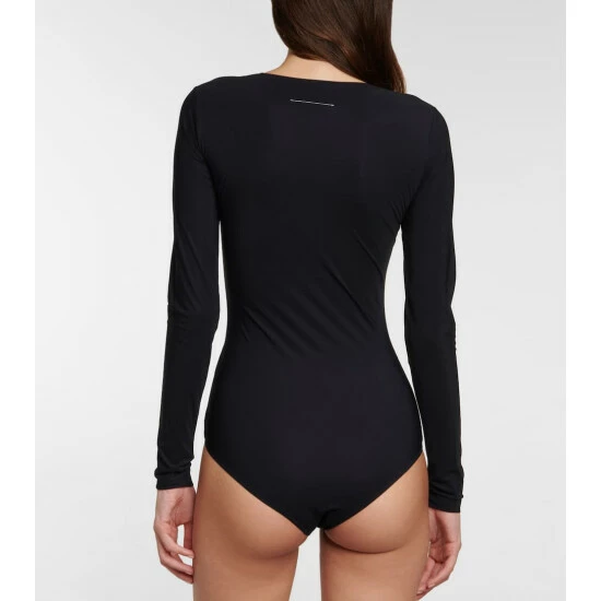 Featuring a subtle logo print at the chest, this bodysuit from MM6 Maison Margiela will slot seamlessly into your luxury edit. It’s made from a lightweight, form-fitting, stretchy fabric with long sleeves and snap-button fastenings.