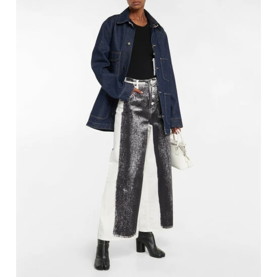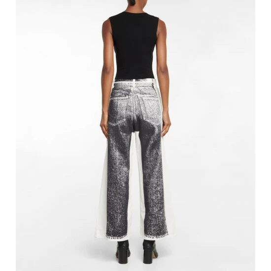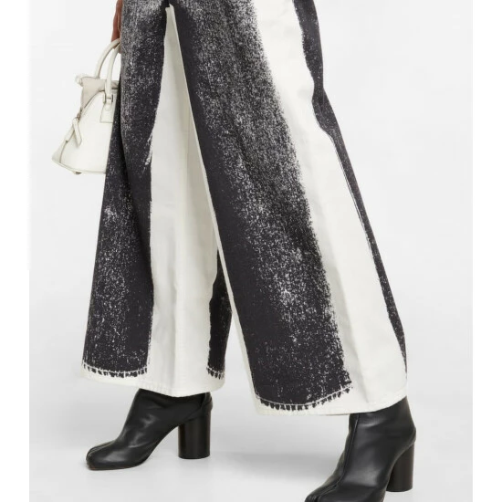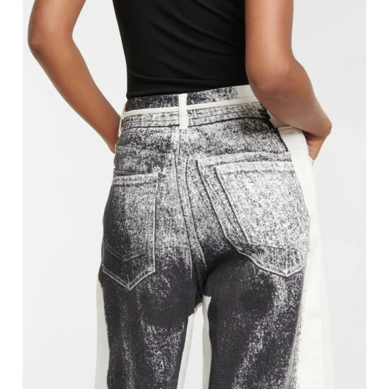 Made from optical white denim, these MM6 Maison Margiela jeans feature an eye-catching pant print on the front. The pair has a wide straight-leg silhouette and is finished with shoelace details knotted at the waist.