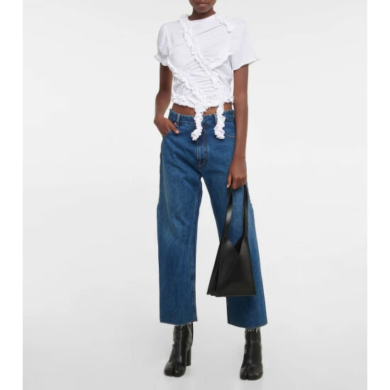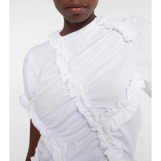 MM6 Maison Margiela adds a fresh dimension to this tonal top with asymmetric ruffled trims and a thoughtful gathering. The crewneck design is made from breathable cotton and cut into a slim fit.
