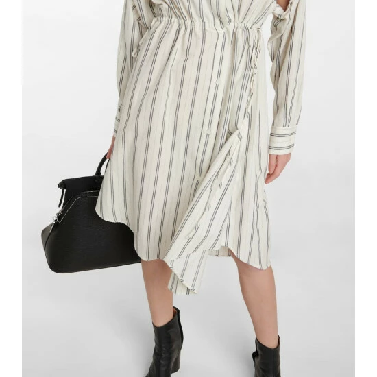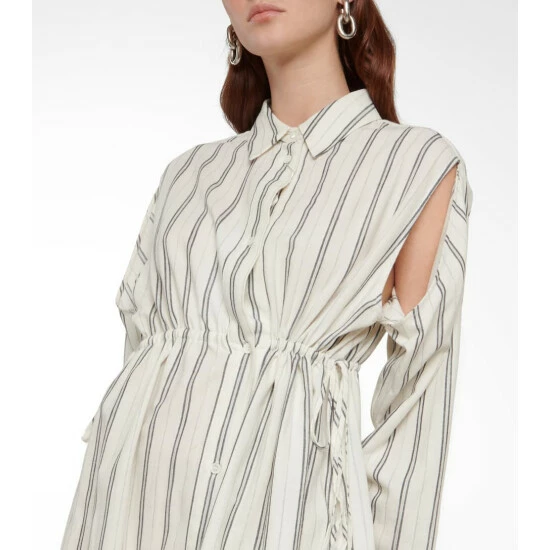 Look to MM6 Maison Margiela for everyday dressing, with pieces like this striped shirt dress. It’s made from striped wool and cotton with a drawstring waist and curved knee-grazing hemline.