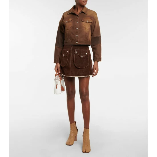 This structured miniskirt from MM6 Maison Margiela is made from suede and punctuated with contrasting topstitching.