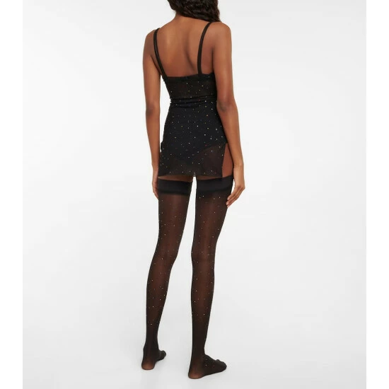 Finish off party looks with these glamorous socks from Oséree. The semi-sheer style has an over-the-knee silhouette that’s punctuated with multicolored crystal embellishments.