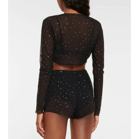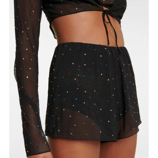 Add glamor to the bedroom and beyond with these shorts from Oséree. The slinky, semi-sheer style has a loose silhouette that is punctuated with multicolored crystal embellishments.