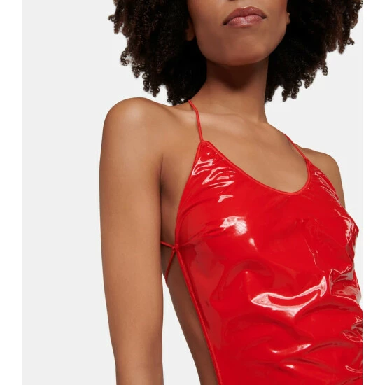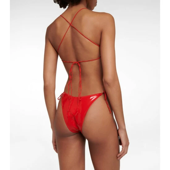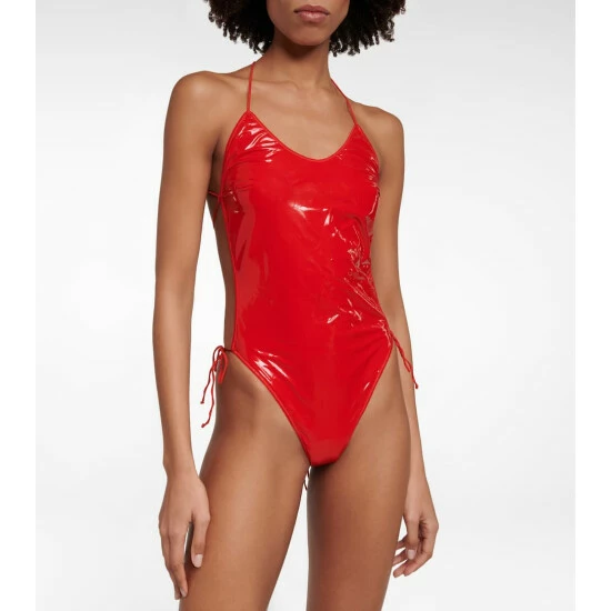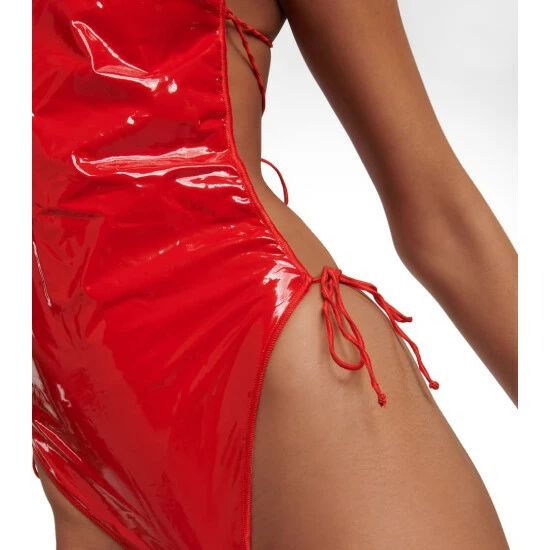 Made from shiny latex, the Glow lacé swimsuit secures with self-tie fastenings that run up the sides and offers medium coverage.