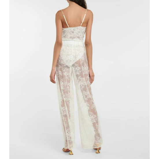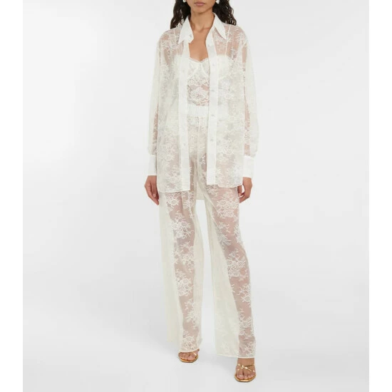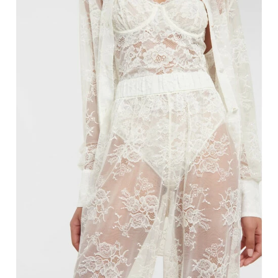 These pants from Oséree are made from sheer floral lace. They have a high-rise, elasticated waistband and wide legs.