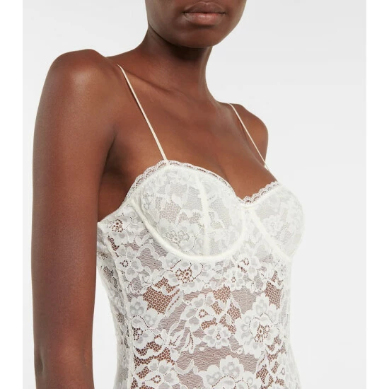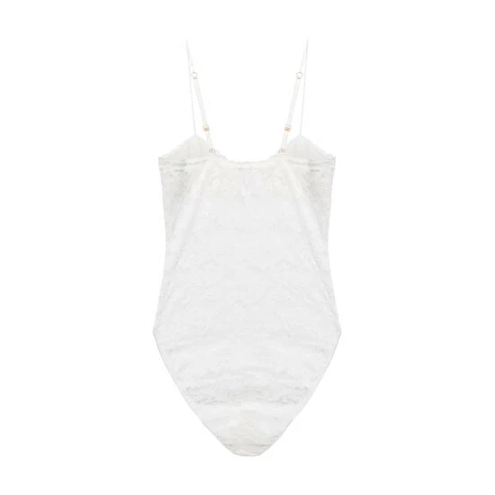 This bodysuit from Oséree is made from sheer floral lace. It has wired cups and adjustable shoulder straps.