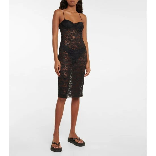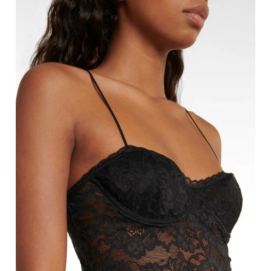 This minidress from Oséree blurs the lines between lingerie and eveningwear. The semi-sheer piece has a fitted silhouette with underwired cups and slinky shoulder straps.