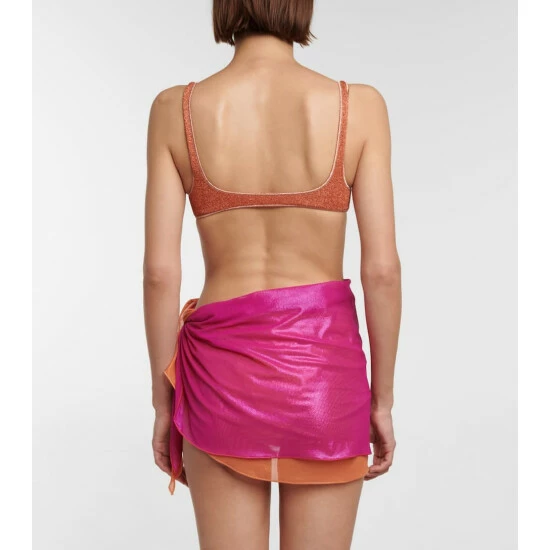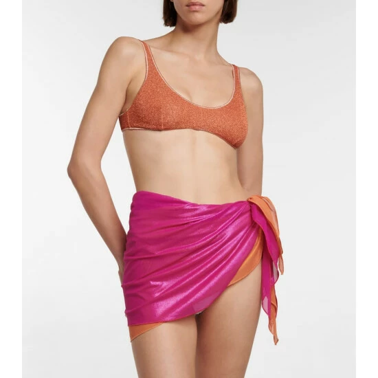 Dazzle as you lounge poolside wearing this beach cover-up from Oséree. It’s made from a semi-sheer, two-tone fabric that’s threaded with shimmering metallic fibers.