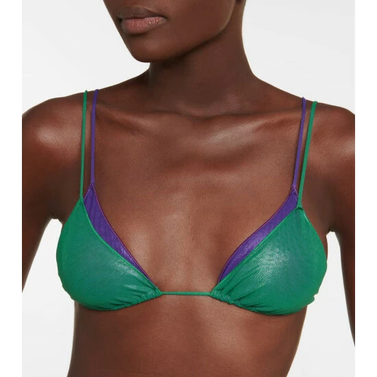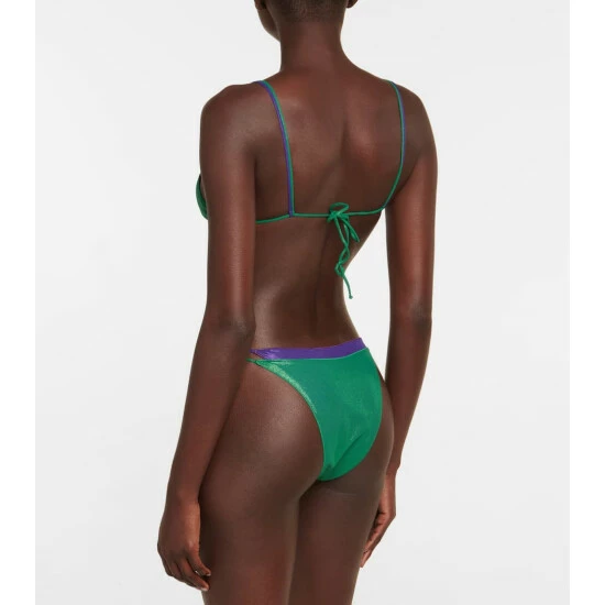 Add a luxurious shine to your beach ensemble with this Lamé bikini from Oséree. Made from shimmering stretch-fabric, this style comprises a triangle top and bottoms with a layered design.
