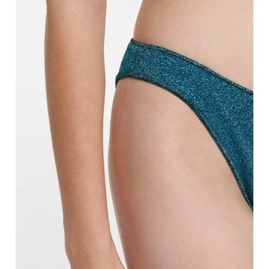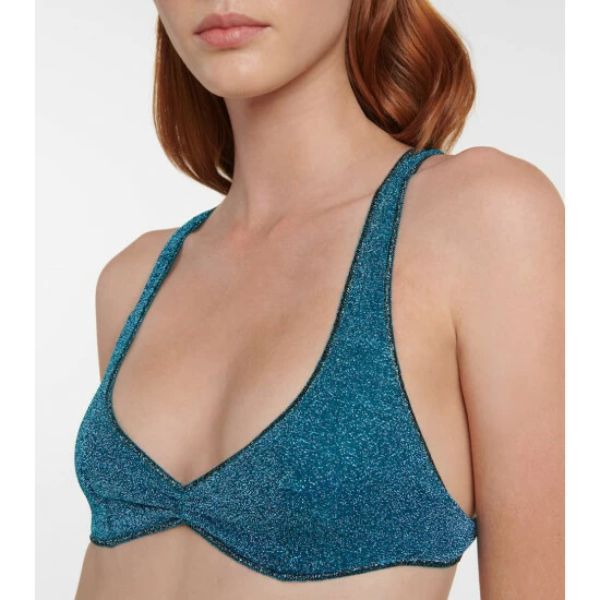 This Lumière ’80s bikini from Oséree is aptly named due to its pared-back proportions. Made from technical jersey which is woven with metallic fibers, the two-piece has a tringle top and classic bottoms. Please note that this style provides minimal coverage.