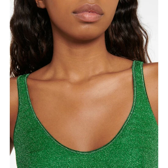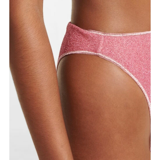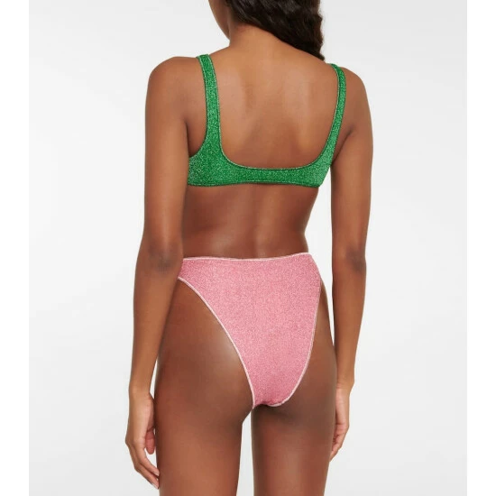 Oséree’s Lumière ‘90s bikini is aptly named for its pared-back proportions. Made from stretchy swim fabric that’s interwoven with metallic fibers, this colorblocked design has a classically styled top and high-cut bottoms for minimal coverage.
