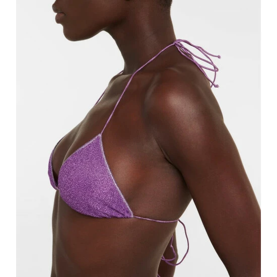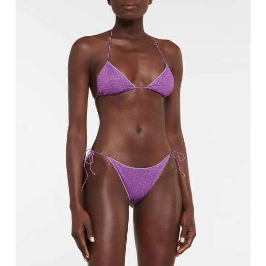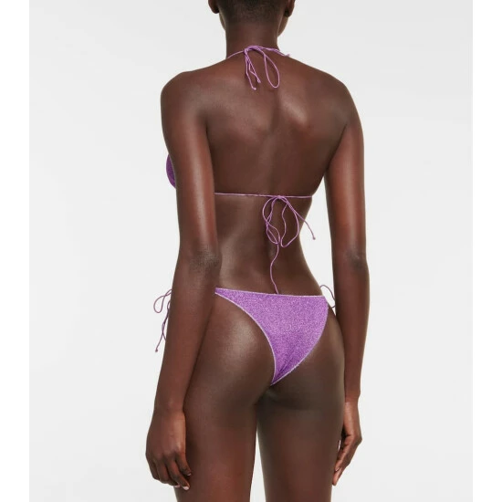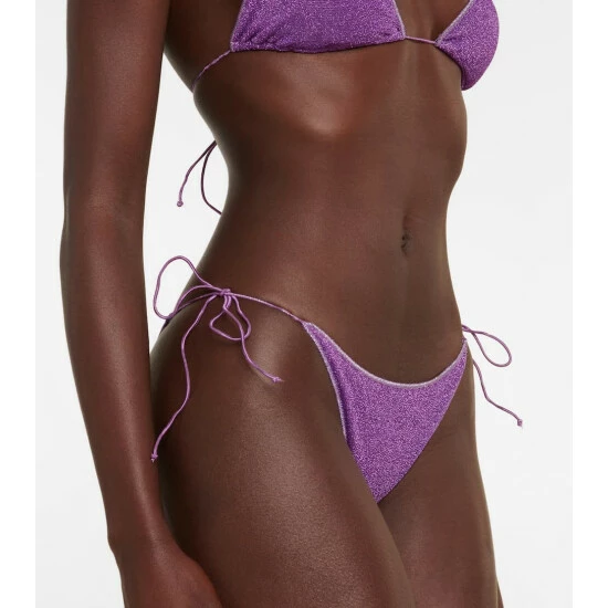 Dazzle in the Lumière bikini from poolside-specialist Oséree. The triangle top and side-tie briefs offer minimal coverage.