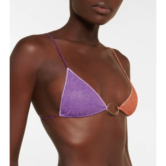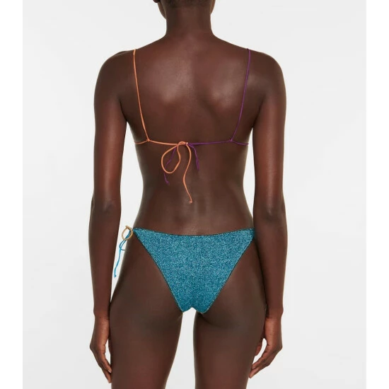 Add some shimmer to your swimwear edit with this Lumière Colorè bikini from Oséree. Made of stretch-swim fabric with metallic fibers, the style comprises a triangle top and bottoms, both of which offer minimal coverage.
