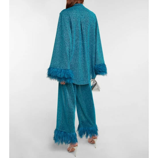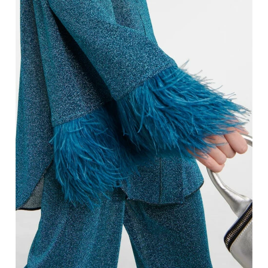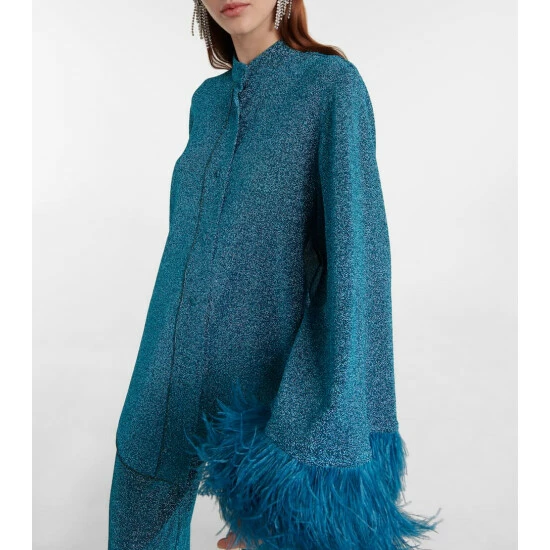 For parties or vacation nights out, turn to this shimmering Lumière blouse from Oséree. Made from the brand’s signature metallic fabric, the glamorous style has feather-trimmed cuffs and a rounded hem.