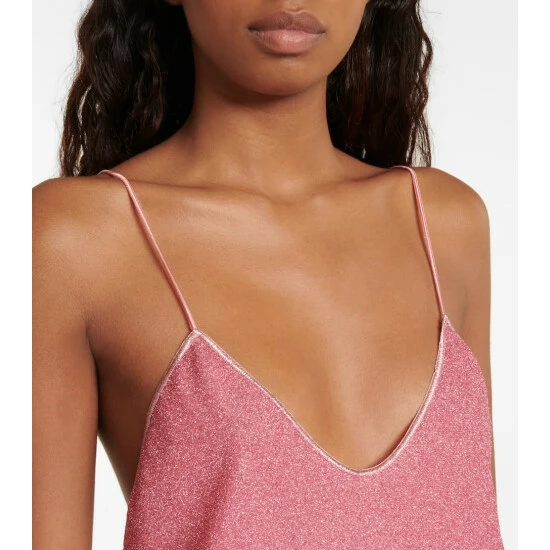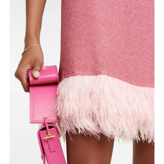 Easily elevate your warm-weather edit with Oséree’s Lumière minidress. It’s made to a relaxed fit from the label’s signature metallic knit for a dazzling shine with thin spaghetti-style straps and a glamorous feather trim.