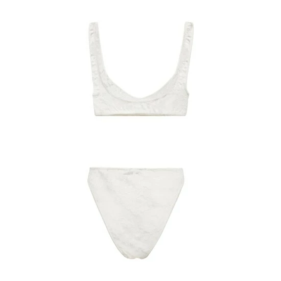 Indulge your romantic side with the O-Lover lingerie set from Oséree. Made in Italy from delicate white lace, the bra comes without padding and the bottoms have a vintage-inspired, flattering high-rise fit.