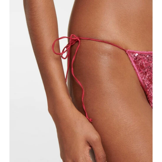 Oséree ensures you’ll be turning heads in this sequin-embellished triangle bikini. An elevated iteration of a classic style, it’s covered with pink sequins and has adjustable string ties.