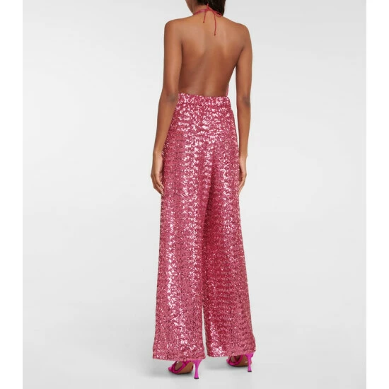 These wide-leg pants from Oséree are ideal for slipping over the label’s bikinis. The pool to party style is fully embellished with pink sequins and has a flattering high-rise.