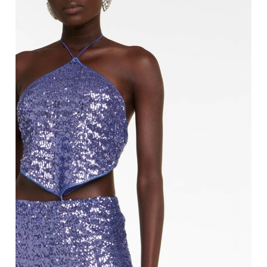 It’s not hard to picture Oséree’s sequined scarf top on bikini-clad starlets of the ’90s. Covered in purple sequins, the slinky style has self-tie straps that allow you to adjust your coverage.