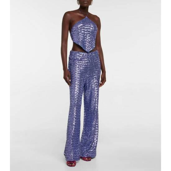 These wide-leg pants from Oséree are ideal for slipping over the label’s bikinis. The pool-to-party style is fully embellished with purple sequins and has a flattering high rise.