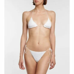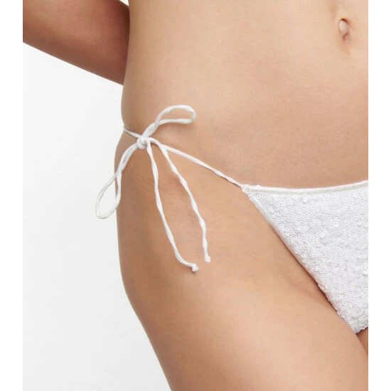 Oséree ensures you’ll be turning heads in this sequin-embellished triangle bikini. An elevated iteration of a classic style, it’s covered with sequins and has adjustable string ties. Please note this item offers minimal coverage.